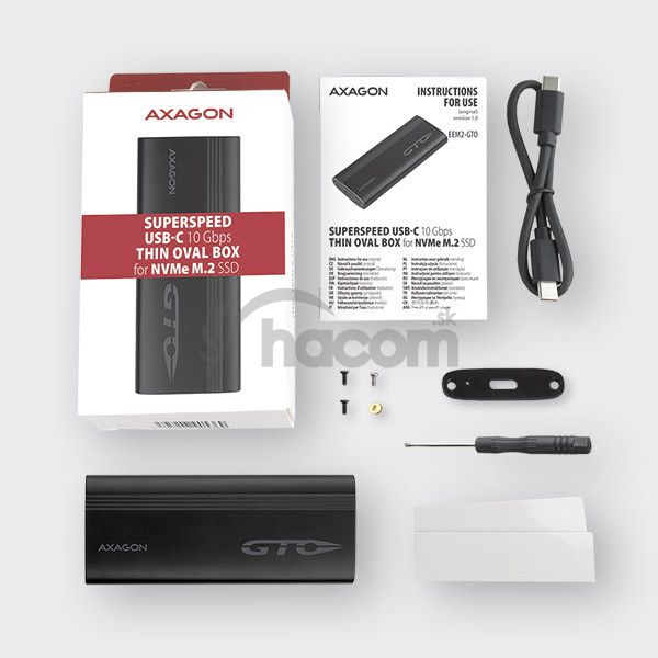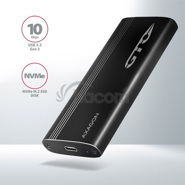 - AXAGON EEM2-GTO, USB-C 3.2 Gen 2 - M.2 NVMe SSD kovový THIN OVAL box EEM2-GTO