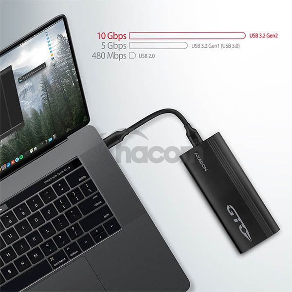 SuperSpeed USB 10 Gbit / s rozhranie dovolí užívať si rýchlosť moderných M.2 SSD diskov. Vďaka rýchlemu USB 3.2 Gen 2 rozhranie je prenosová rýchlosť až 10Gb / s.