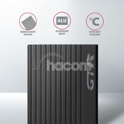 Super rýchly externý AXAGON EEM2-GTR THIN RIB box s USB 3.2 Gen 2 rozhraním je určený pre NVMe (PCI-Express) M.2 SSD disky. Spoľahlivé pripojenie k počítaču umožňuje obojstrannú USB-C konektor na boxe spolu s dodávaným káblom USB-C -> USB-C.Rebrovaný dizajn tela boxu a teplovodivá podložky zaistí veľmi dobré chladenie vloženého M.2 SSD disku. Predlžuje sa tak jeho životnosť a tiež je zamedzené spomaľovaní rýchlosti disku tzv. "Thermal škrtenia". Robustné telo boxu tiež zaistí dodatočnú ochranu disku.