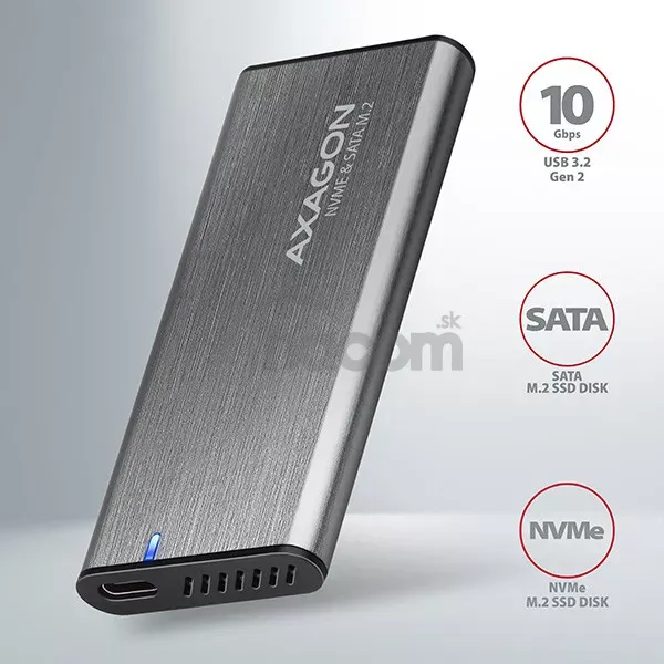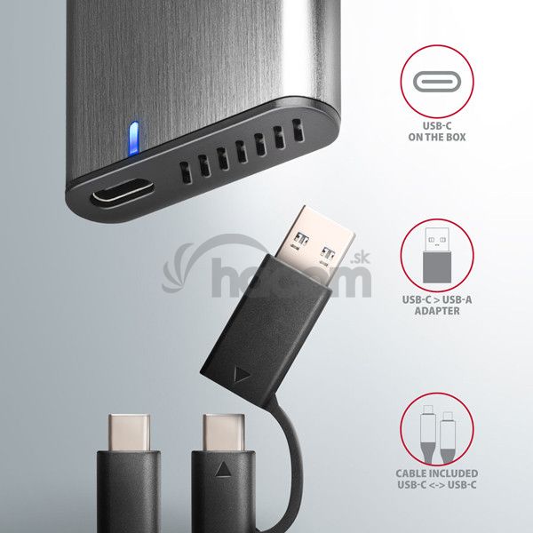 • USB-C 3.2 Gen 2 kombinovaný externý box pre M.2 SSD,