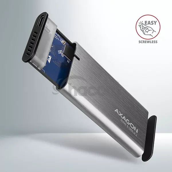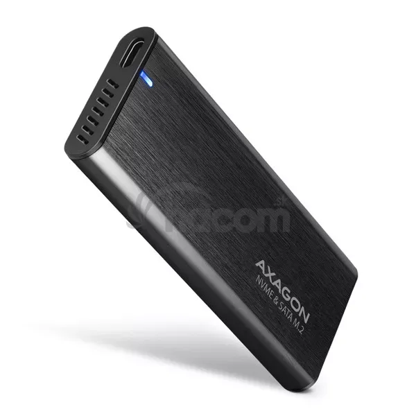 - AXAGON EEM2-SB2, USB-C 3.2 Gen 2 - M.2 NVMe & SATA SSD kovový RAW box, bezskrutkový, čierny EEM2-SB2
