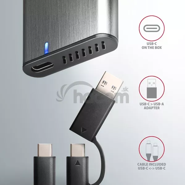 • Kábel USB type C male / USB type C male dĺžky 20 cm a redukcia USB type C female / USB type A male sú súčasťou balenia.