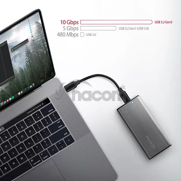 • Celková priepustnosť / prenosová rýchlosť boxu je daná použitým USB 3.2 Gen 2 rozhraním (teoreticky až 10 Gbit/s).