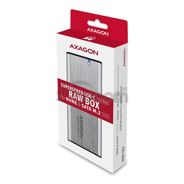 Univerzálny externý AXAGON EEM2-SB2 RAW box s USB 3.2 Gen 2 rozhraním určený pre M.2 NVMe alebo SATA SSD disky . Spoľahlivé pripojenie umožňuje obojstranný USB-C konektor na boxe. V balení nájdete nielen kábel USB-C -> USB-C na pripojenie boxu k počítaču, ale aj USB-C -> USB-A redukciu. Môžete tak box pripojiť k akémukoľvek voľnému USB portu na notebooku.Druhá generácia rýchleho USB rozhrania dovolí užívať si rýchlosť moderných M.2 SSD diskov. Vďaka USB 3.2 Gen 2 rozhraniu je prenosová rýchlosť až 10 Gb/s . Externý M.2 box podporuje aj ďalšie moderné funkcie napr. UASP, TRIM a umožňuje čítanie SMART informácií monitorujúcich stav disku. Podpora úsporného režimu pri nečinnosti.