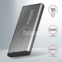 - AXAGON EEM2-SG2, USB-C 3.2 Gen 2 - M.2 NVMe & SATA SSD kovový RAW box, bezskrutkový EEM2-SG2