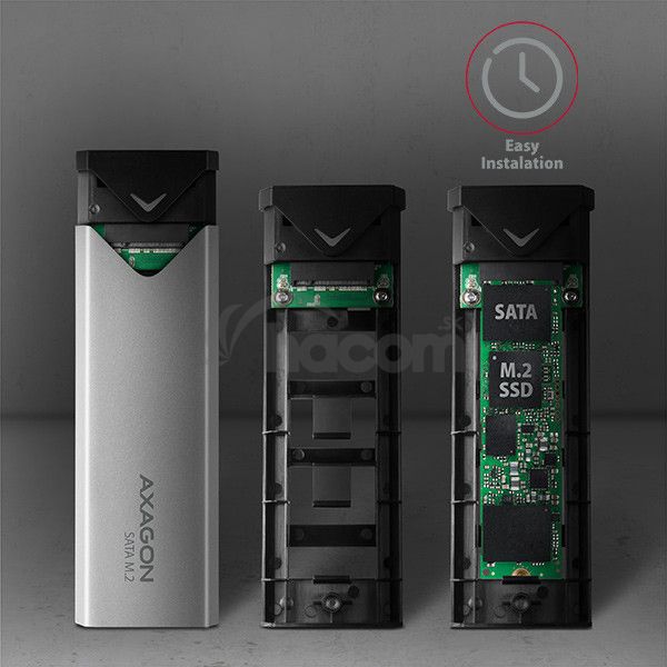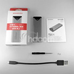 - AXAGON EEM2-U3C, USB-C 3.2 Gen 1 - M.2 SATA SSD kovový box, dĺžka 42 až 80 mm EEM2-U3C