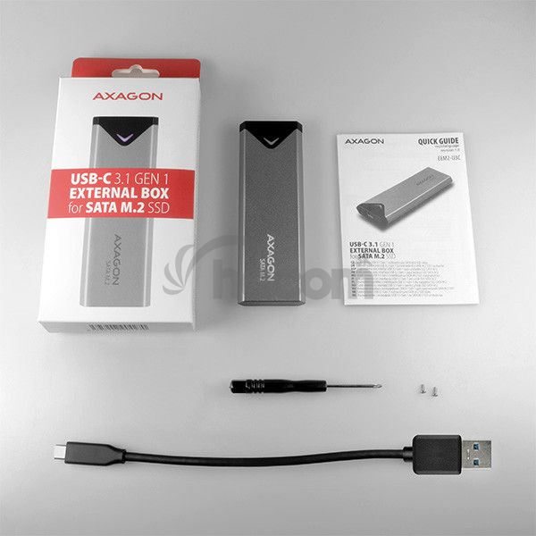 • USB-C 3.2 Gen 1 externý box pre SATA M.2 SSD,