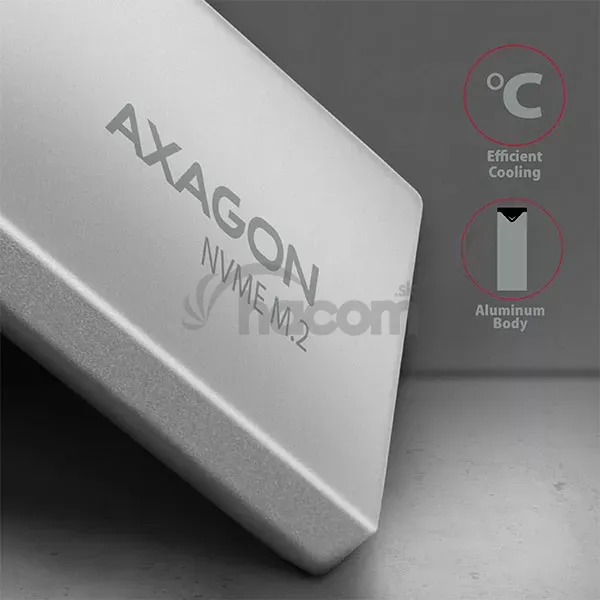 Do externého boxu je možné použiť NVMe M.2 SSD disky až do rozmeru 22x80 mm. Box nemá obmedzenia kapacity SSD diskov. Karty M.2 môžu byť jednostranné alebo obojstranné. Hliníkové telo boxu a teplovodivá podložky zaistí veľmi dobré chladenie vloženého M.2 SSD disku.