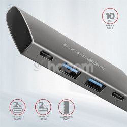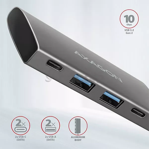 - AXAGON HMC-4G2, USB-C 3.2 Gen 2 10 Gb / s húb, porty 2x USB-A + 2x USB-C, kábel USB-C 13cm HMC-4G2