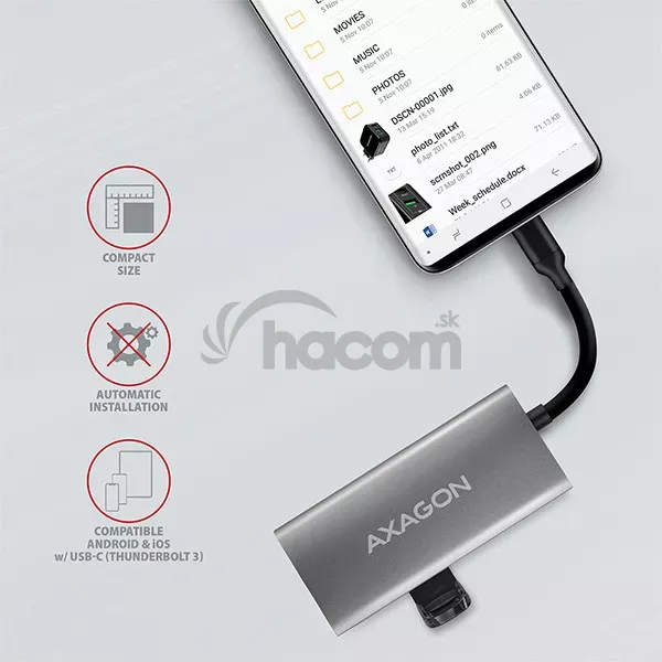Možno tak využiť Vaše existujúce USB periférie bez nutnosti obstarávania nových. Vďaka funkciám Plug and Play a Hot Plug je samotné zapojenie hubu veľmi jednoduché bez zložitej inštalácie, a tiež možno jednoducho pripájať a odpájať periférie za behu počítača. Rozbočovač sa nezľakne ani pripojenie k telefónom s USB-C konektorom. K telefónu tak pripojíte napríklad flash disk, klávesnicu alebo myš.