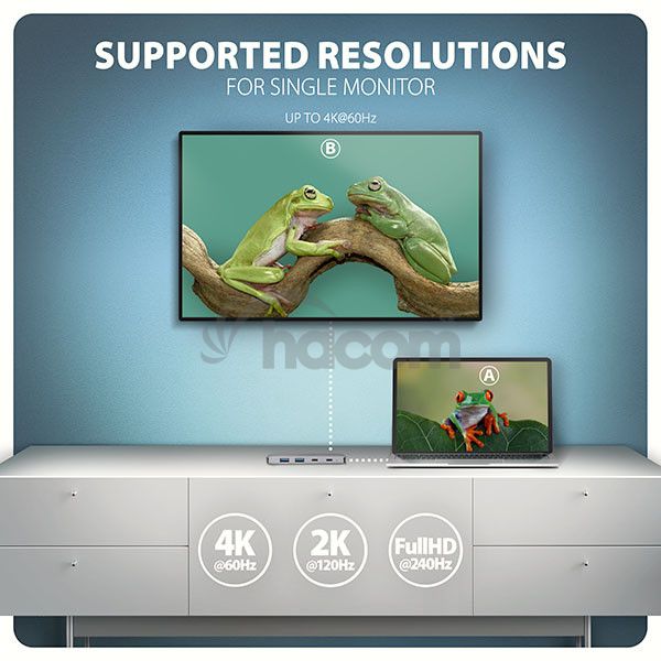 • Pre funkciu video výstupu je nutné hub zapojiť do USB-C portu s podporou DisplayPort Alternate Mode (DP Alt Mode) alebo do USB-C portu s podporou Thunderbolt 3/4. Ďalej je nutný vhodný OS. Bez tejto podpory nebude funkcia video výstupu dostupná.