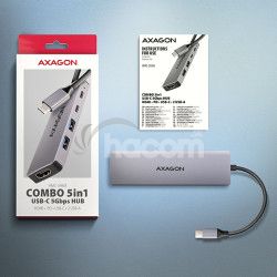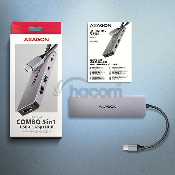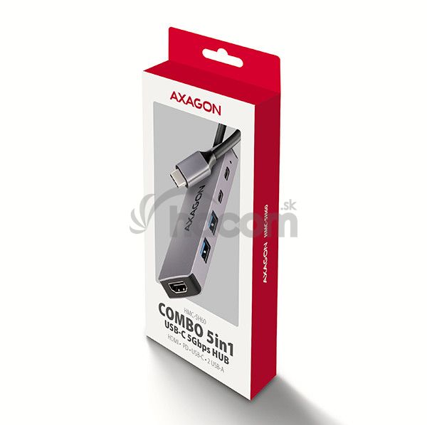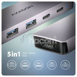 - AXAGON HMC-5H60, USB 5Gbps húb, porty 2x USB-A, 1x USB-C, HDMI 4k/60, PD 100W, kábel USB-C 15cm HMC-5H60