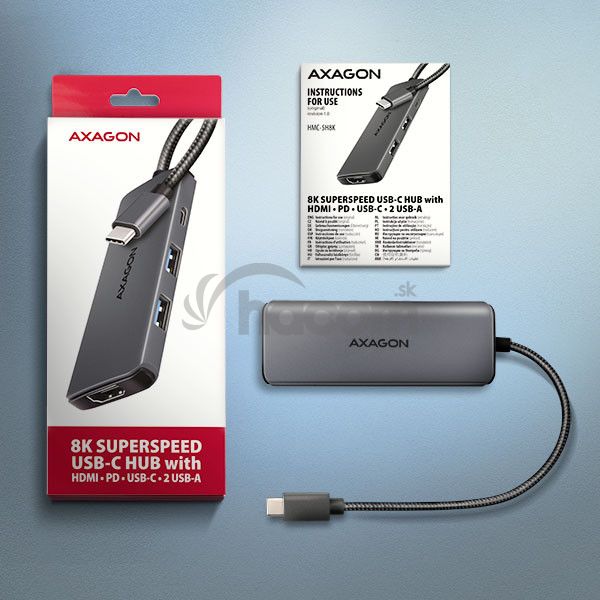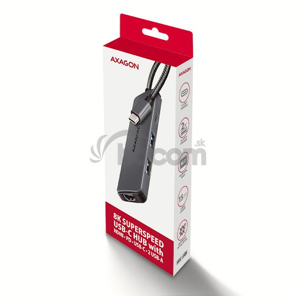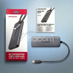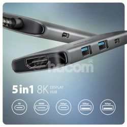 - AXAGON HMC-5H8K, USB 5Gbps húb, 2x USB-A, USB-C, HDMI 8k/30Hz, PD 100W, kábel USB-C 15cm HMC-5H8K