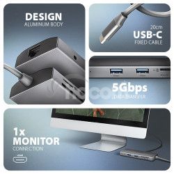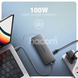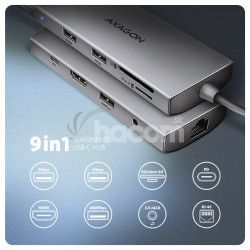 AXAGON HMC-8HLSA, USB 5Gbps húb, 3x USB-A, HDMI 4k/60Hz, RJ-45 GLAN, SD/microSD, audio, PD 100W HMC-8HLSA