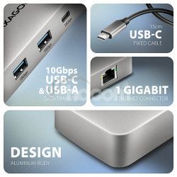 AXAGON HMC-CUB83X2, USB 10Gbps húb, 2x USB-A, USB-C, HDMI a DP 4k/144Hz, RJ-45, PD 100W, kábel 15cm HMC-CUB83X2