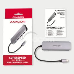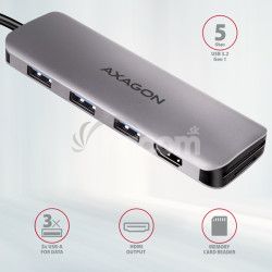 - AXAGON HMC-HCR3A, USB 3.2 Gen 1 húb, porty 3x USB-A, HDMI 4k/30Hz, SD/microSD, kábel USB-C 20cm HMC-HCR3A
