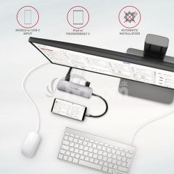 Replikátor portov je ideálnym doplnkom pre notebooky bez USB-A konektorov, čítačky kariet a video výstupu . V hube je možné využiť Vaše existujúce USB periférie bez nutnosti zaobstarávania nových. Vďaka funkciám Plug and Play a Hot Plug je samotné zapojenie hubu veľmi jednoduché bez zložitej inštalácie a taktiež je možné jednoducho pripájať a odpájať periférie za behu počítača. Rozbočovač sa nezľakne ani pripojenie k telefónom s USB-C konektorom. K telefónu tak pripojíte napríklad flash disk, klávesnicu, myš, monitor, TV alebo projektor.