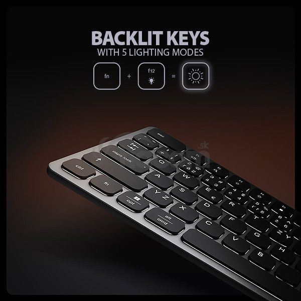 • Prepínanie medzi OS: fn+S pre Windows/Android, fn+A pre macOS/iPadOS/iOS.