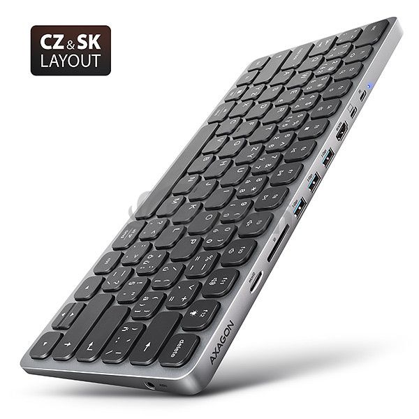 - AXAGON HMC-KB-CS, USB 5Gbps húb s klávesnicou CZ/SK, HDMI 4K/60Hz, 3x USB-A, SD/mSD, audio, PD 100W HMC-KB-CS