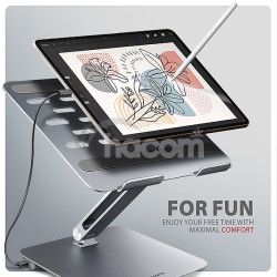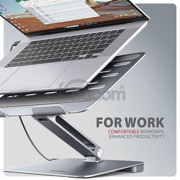 Veľkou výhodou stojana je chytré riešenie s dvojitým kĺbom , ktoré umožňuje nastaviť uhol náklonu aj výšku obrazovky notebooku tak, aby bola v jednej rovine s externým monitorom. Tým získate ďalšiu pracovnú plochu v správnej úrovni očí, čo výrazne zlepšuje ergonómiu, zvyšuje pohodlie pri práci a podporuje vašu produktivitu.