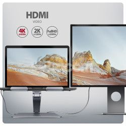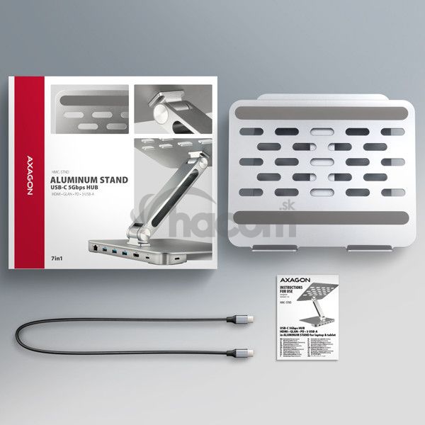 - AXAGON HMC-STND, stojan pre 10"-16" notebooky, USB 5Gbps húb, 3x USB-A, HDMI 4k/60Hz, RJ-45, PD 100W HMC-STND
