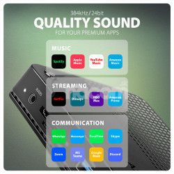 Na pripojenie stereo slúchadiel, headsetu alebo aktívnych reproduktorov môžete použiť zvukový výstup 3.5 mm . Ten je vybavený vysoko kvalitným DAC prevodníkom , ktorý podporuje vzorkovanie až 384 kHz pri 24 bitoch . Užijete si tak špičkovú kvalitu zvuku, ktorá je ideálna pre bezstratové formáty ako FLAC, WMA, WAV, APE, AAC alebo ALAC.