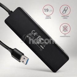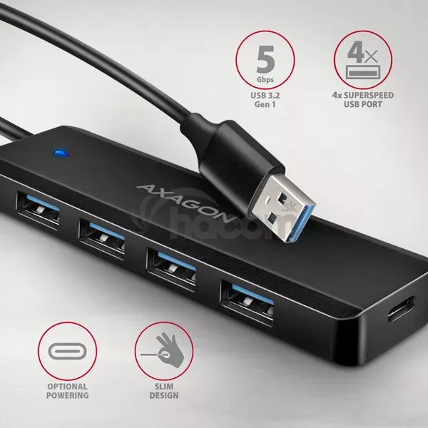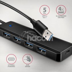 - AXAGON HUE-C1A, 4x USB 5Gbps TRAVEL húb, USB-C napájací konektor, kábel USB-A 19cm HUE-C1A