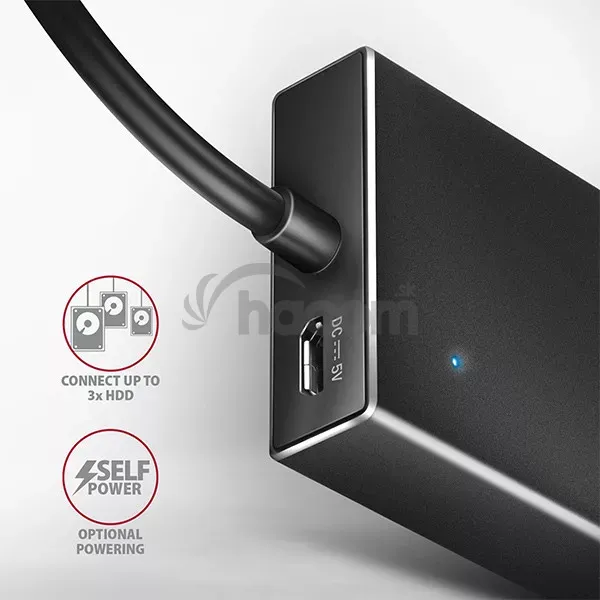 • USB hub v tomto režime napájania tiež utiahne až 3 magnetické 2.5" externé disky súčasne.