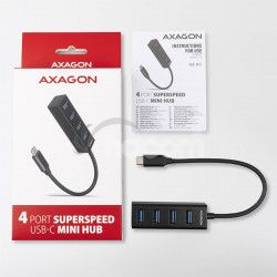- AXAGON HUE-M1C, 4x USB 3.2 Gen 1 MINI húb, kovový, kábel USB-C 20cm HUE-M1C