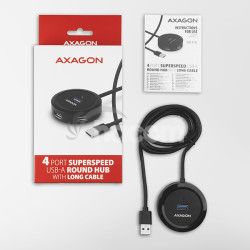 - AXAGON HUE-P1AL, 4x USB 3.2 Gen 1 ROUND húb, micro USB napr. konektor, kábel USB-A 1.2m HUE-P1AL