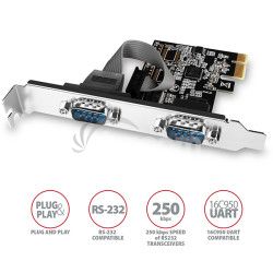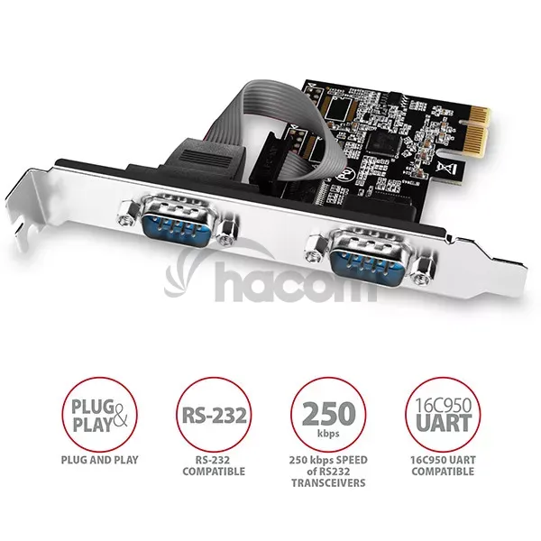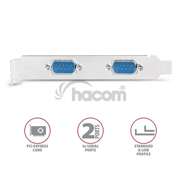 - AXAGON PCEA-S2n, PCIe radič - 2x sériový port (RS232) 250 kbps, vr. LP PCEA-S2N