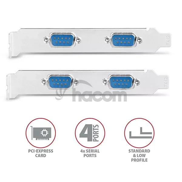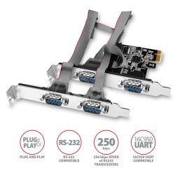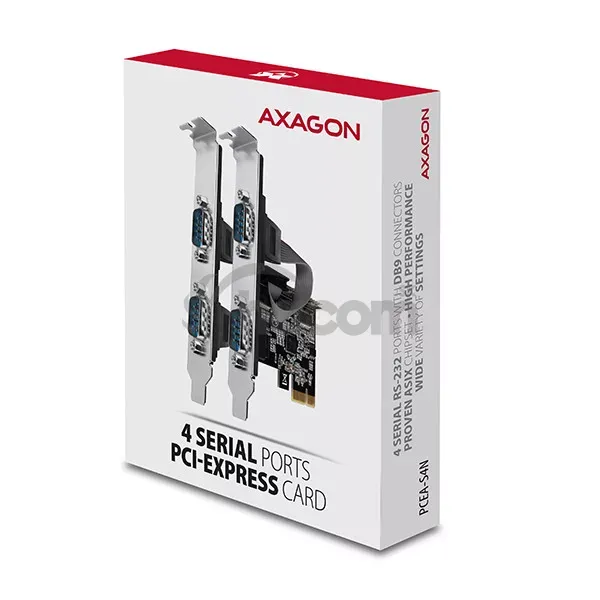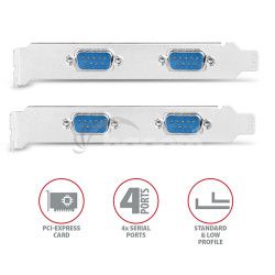 - AXAGON PCEA-S4N, PCIe radič - 4x sériový port (RS232) 250 kbps, vr. LP PCEA-S4N