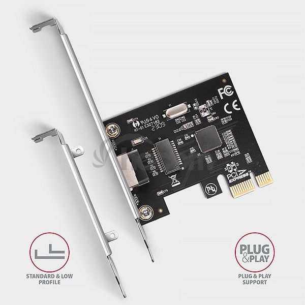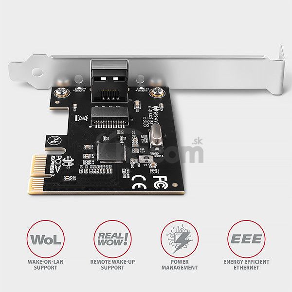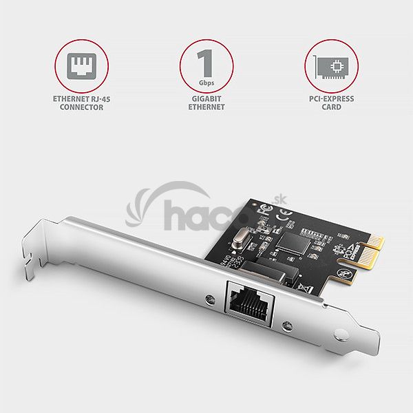 - AXAGON PCEE-GRL, PCIe sieťová karta - 1x Gigabit Ethernet port (RJ-45), Realtek 8111L, vr. LP PCEE-GRL
