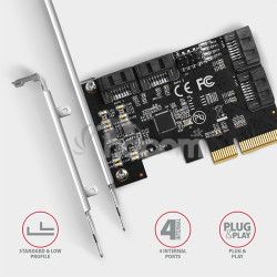 - AXAGON PCES-SA4X4, PCIe radič - 4x interný SATA 6G port, ASM1164, SP & LP PCES-SA4X4