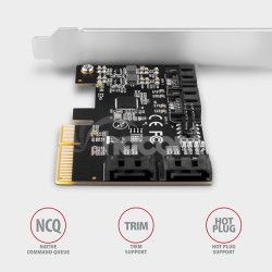 PCI-Express radič AXAGON PCES-SA4X4 rozšíri stolný PC o štyri SATA III porty s prenosovou rýchlosťou až 6Gb/s.Karta osadená čipsetom ASMedia ponúka nielen podporu špecifikácie SATA 3.0, ale aj ďalších SATA technológií ako Hot-Plug, Native Command Queue (NCQ), TRIM alebo Port Multiplier. Jednoduchá inštalácia bez nutnosti inštalácie ovládačov vo väčšine operačných systémov.