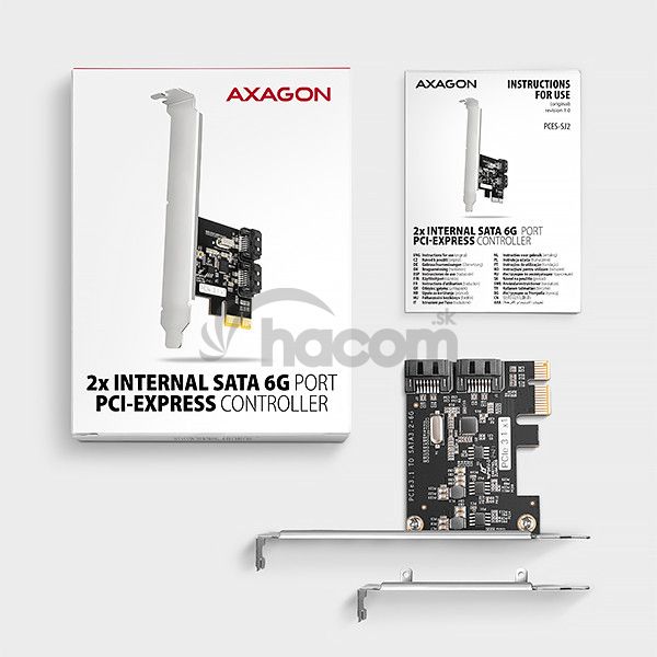 - AXAGON PCES-SJ2, PCIe radič - 2x interný SATA 6G port, JMB582, SP & LP PCES-SJ2