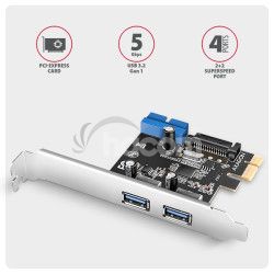 - AXAGON PCEU-232RS, PCIe radič, 2+2x USB 5Gbps port, SATA napájanie, Renesas PD720201, SP & LP PCEU-232RS