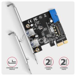 AXAGON PCEU-232RS, PCIe radič, 2+2x USB 5Gbps port, SATA napájanie, Renesas PD720201, SP & LP PCEU-232RS