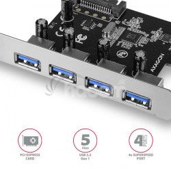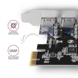 - AXAGON PCEU-430VL, PCIe radič, 4x USB 3.2 Gen 1 port, UASP PCEU-430VL