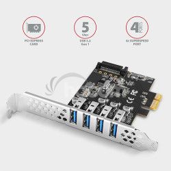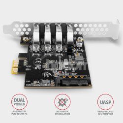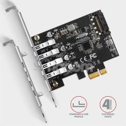- AXAGON PCEU-43RS, PCIe radič, 4x USB 3.2 Gen 1 port, UASP, napájanie z PCIe alebo SATA, SP & LP PCEU-43RS
