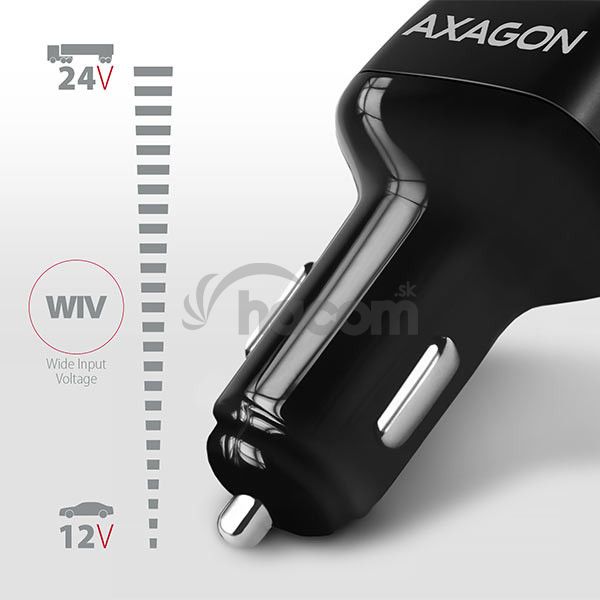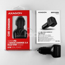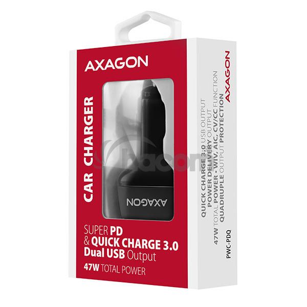 - AXAGON PWC-PDQ, PD a QUICK nabíjačka do auta, 2x port QC3.0 / AFC / FCP / SCP + PD type-C, 47W PWC-PDQ