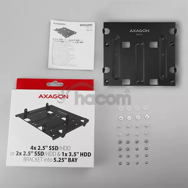 - AXAGON RHD-435, kovový rámček pre 4x 2.5 "alebo 2x 2.5" HDD / SSD a 1x 3.5 "HDD do 5.25" pozície RHD-435