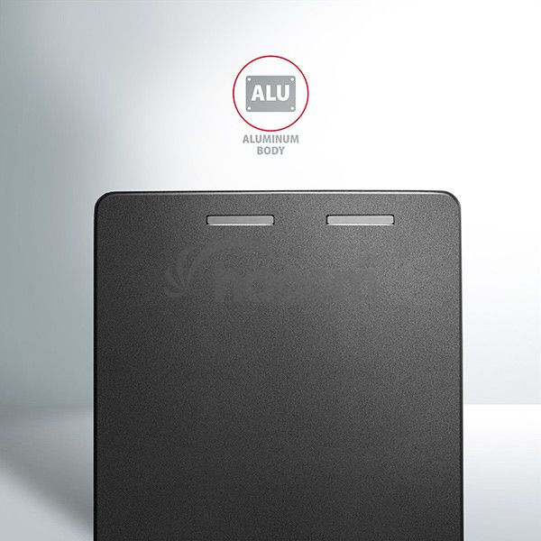 Vonkajší kovový plášť je prevedený v čiernej farbe s elegantným matným povrchom, ktorý bráni nežiaducim odtlačkom prstov. Hliníkové telo boxu zaistí veľmi dobré chladenie vloženého M.2 SSD disku.