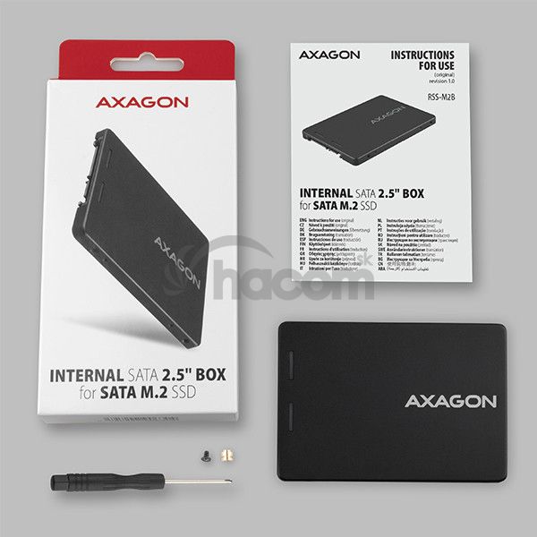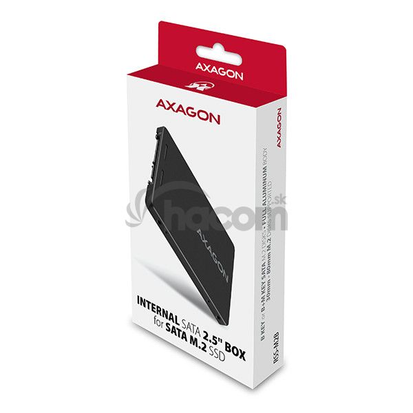 - AXAGON RSS-M2B, SATA - M.2 SATA SSD, interný 2.5" ALU box, čierny RSS-M2B