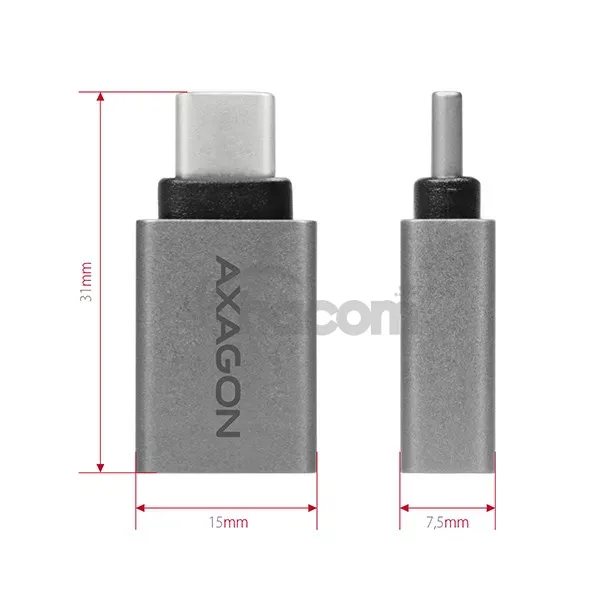- AXAGON RUCM-AFA, USB 3.1 Type-C Male -> Type-A Female ALU redukcie RUCM-AFA