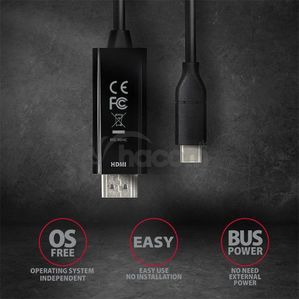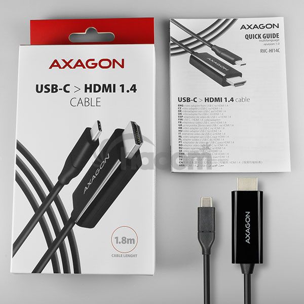 - AXAGON RVC-HI14C, USB-C -> HDMI 1.4 redukcia / kábel 1.8m, 4K / 30Hz RVC-HI14C