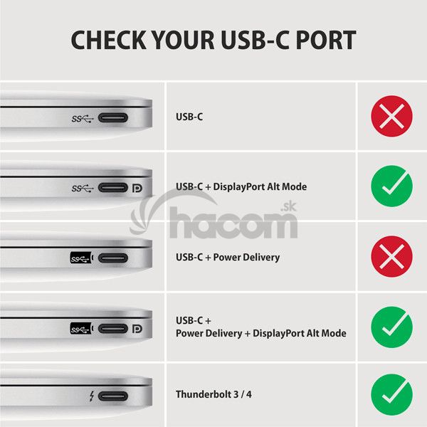 Kábel je iba jednosmerný, tj prevodník z USB-C na HDMI, nie naopak. Pre správne fungovanie prevodníka je nutný USB-C port s podporou DisplayPort Alternate Mode (DP Alt Mode) alebo zariadenie s Thunderbolt 3/4 portom.