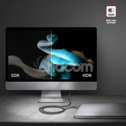 Moderná USB-C -> HDMI aktívna káblová redukcia AXAGON RVC-HI2MC pre pripojenie HDMI monitora/TV/projektora k notebooku alebo telefónu pomocou USB-C konektora.Hardwarový prevodník bez potreby akejkoľvek inštalácie zaistí kvalitný obraz až do rozlíšenia 4K/60Hz Ultra HD . Podporované sú tiež obľúbené herné rozlíšenia WQHD 2560 x 1440 pri 60, 120 a 144 Hz alebo FullHD 1920 x 1080 pri 60, 100, 120, 144 a 240 Hz. Vďaka podpore HDR (vysoko dynamický rozsah) si môžete bez obmedzenia vychutnať výrazne rozšírený rozsah farieb a kontrastov.