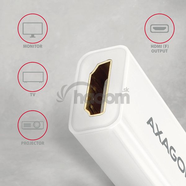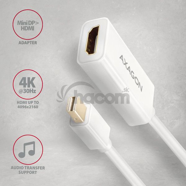 - AXAGON RVDM-HI14NW, Mini DisplayPort -> HDMI 1.4 redukcia / adaptér, 4K/30Hz, biely RVDM-HI14NW