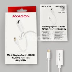 Mini DisplayPort -> HDMI aktívny adaptér AXAGON RVDM-HI14NW pre pripojenie HDMI monitora/TV/projektora k počítaču s výstupom Mini DisplayPort.Šikovný malý hardvérový prevodník bez potreby akejkoľvek inštalácie či nastavovania zaistí kvalitný prenos obrazu aj zvuku až do rozlíšenia 4K/30Hz .